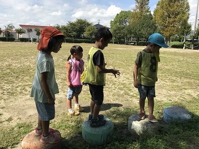 いつもより遠くへお散歩に行きました。線路沿いを歩いていると、”カンカンカン”という踏切の音が聞こえてきました。「どっちから電車くるかな?」「どんな電車かな?」とわくわくしながら見るお友だち。近鉄線の電車や特急ひのとりが通っていくと、「これ、乗ったことある!」「ひのとりや!!」と嬉しそうに見ていました。公園や海山道保育園まで行ったりと、たくさん歩いてお散歩を楽しみました。