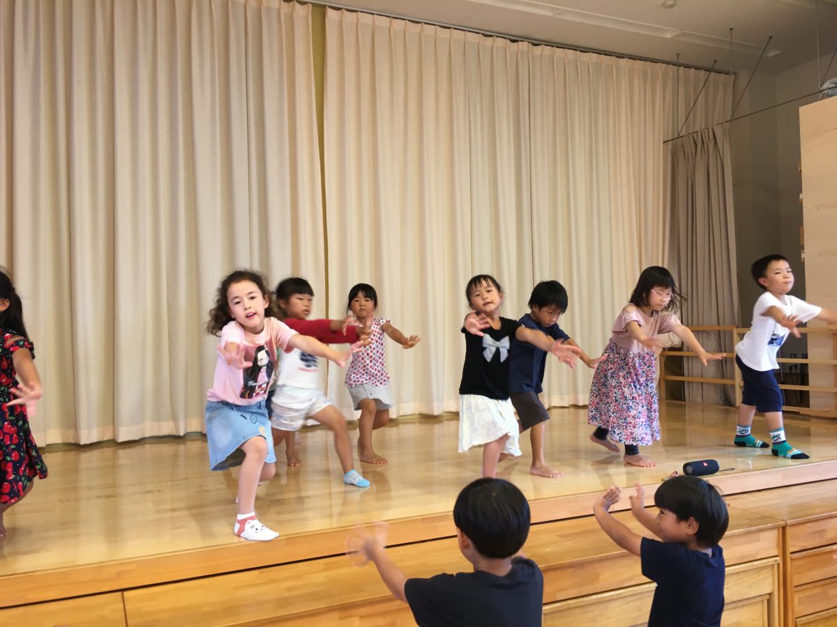 舞台でダンス♪「おれせんせいやくしたい」とダンス教室の時のように、前に立って楽しそうに踊り、気分は先生のようでした。