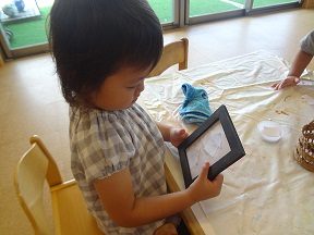 貼った作品を額に入れて飾ると喜んでいました。