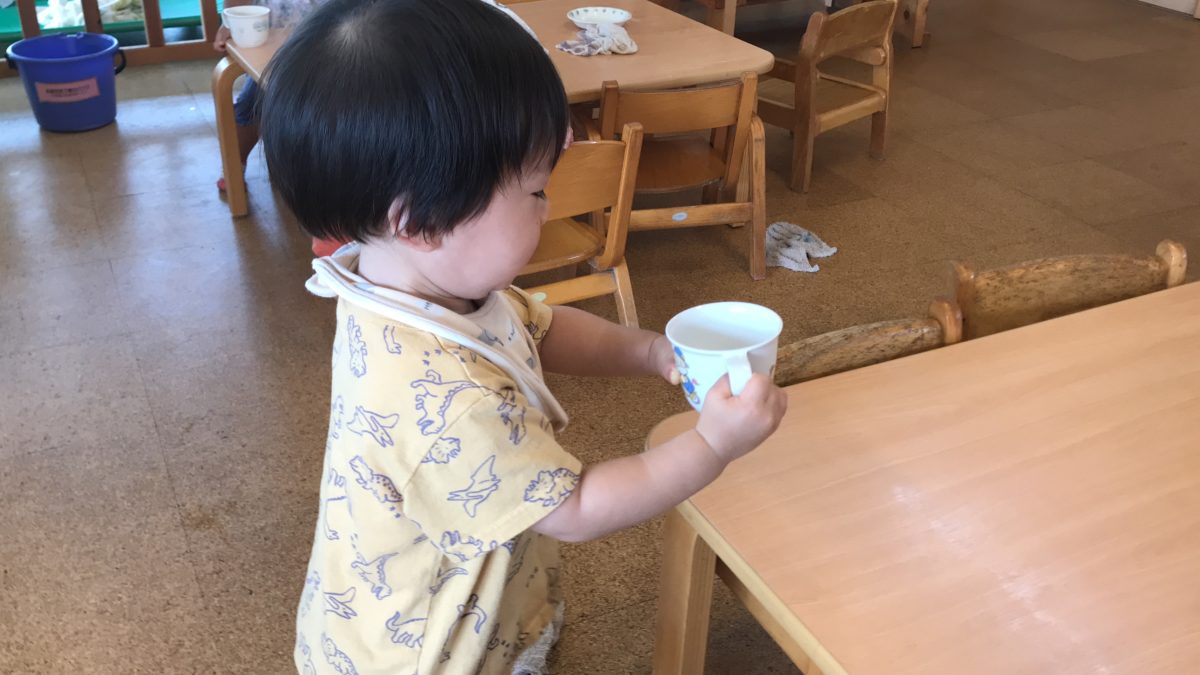 慎重に牛乳を運んでいました。運び終えることができると嬉しそうに笑顔を見せていました。