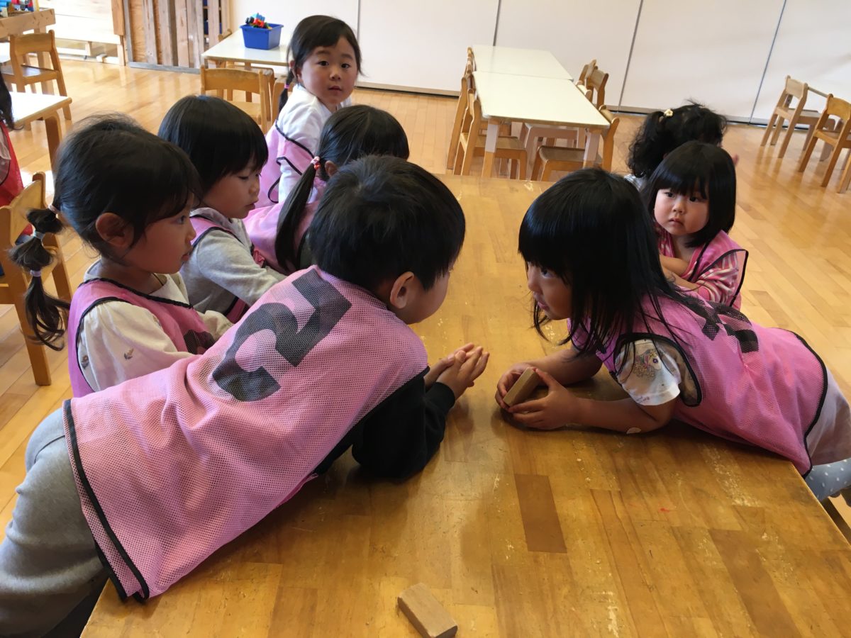「きょうもなぞなぞしたい!」「チームせんがいい!!」と話す子どもたち。