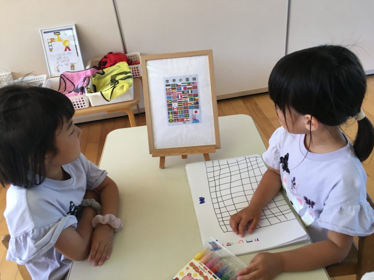 「わたし、ドイツとアメリカはしってるけど、はたはしらんのよなぁ~。あるんかな?」と探そうとする子どもたちでした。