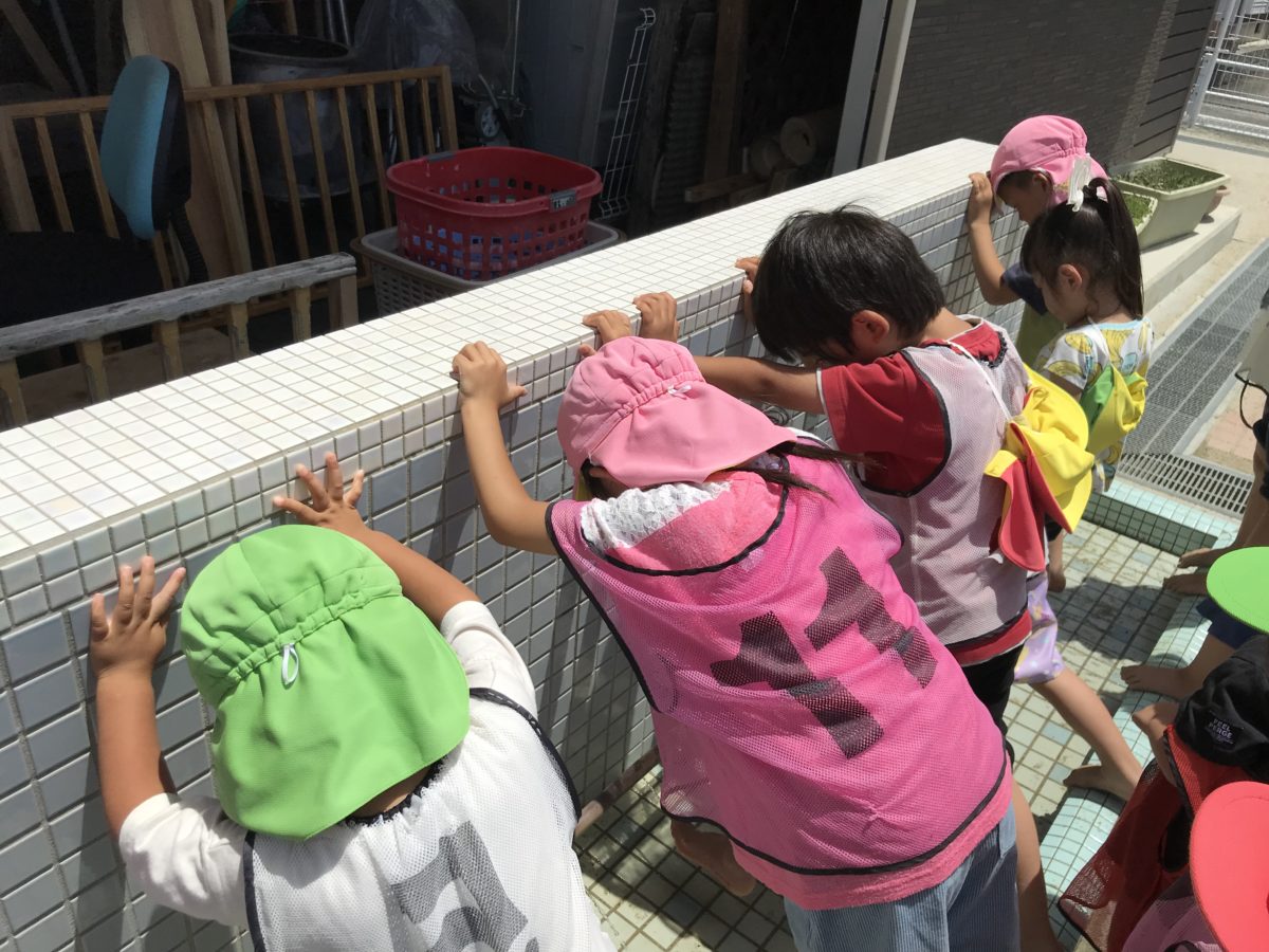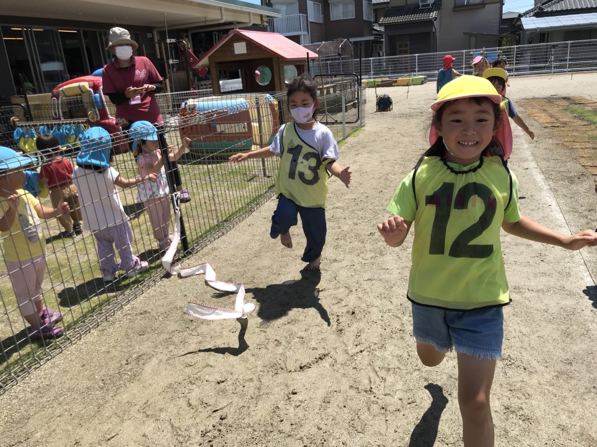 先日から子ども達が興味津々のクワガタ!虫カゴを机に置いておくとみんなで集まり「どこいった!?」「またつちのなかかな~?」と少し残念そうな声が・・・。ですがよーく見ていると「あれ?やさいなくなってる!」「もしかしたらたべたのかも!」と色々な声が聞こえてきました。また、色々な種類のカブトムシやクワガタが載っている資料も一緒に置いてみると「むしかごにいるクワガタとこれといっしょかも」「これきんいろやで~!」と他のクワガタにも興味を示す姿がありました。昨日の雨で園庭がドロドロになっており裸足でお外に行くと「なんかきもちい!」「ぺちゃぺちゃするー」と土の感覚を楽しみながらも運動会ごっこに真剣に取り組んでいました。「きょうはよごれるからすわらんほうがいいで~」「ちょっとはしりにくい・・・」と環境が変わりましたがそれに合わせて子ども同士で会話しながら自分達で進めていこうとするたくましい姿がありました。運動会ごっこが終わると綺麗に水洗い!「きもちいいー!」「みずつめたーい」と水の気持ち良さを感じていました。また、色々な生き物・虫に興味津々な子ども達はイモムシやチョウチョなど見つけるとお友だちに「ここいるよ!」と小さいお友だちに教えてあげる優しい姿がたくさんありとても微笑ましいです。