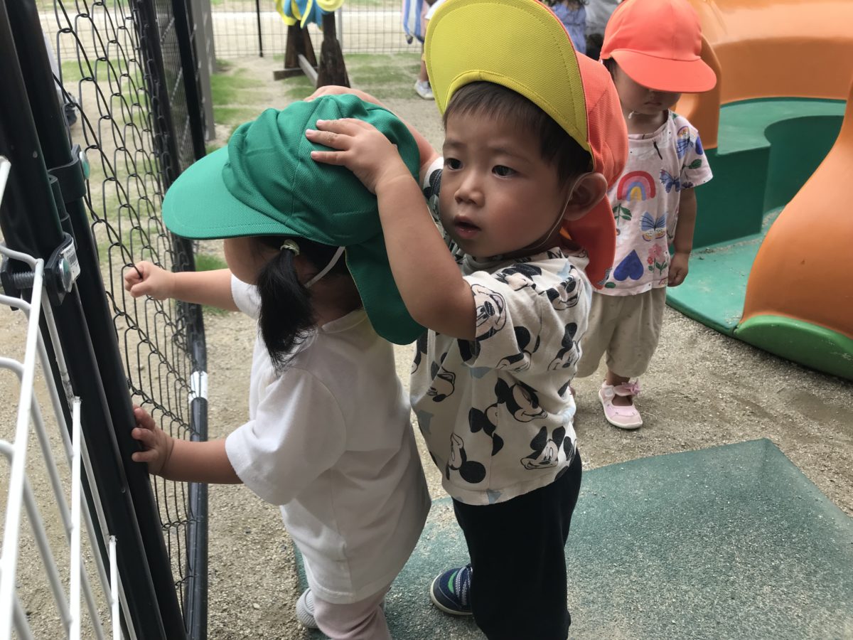 いちご組のお友だちもお世話がしたい!ようで、帽子を被せてくれようとしたり、靴を探してきてくれたりとお世話をしてました。