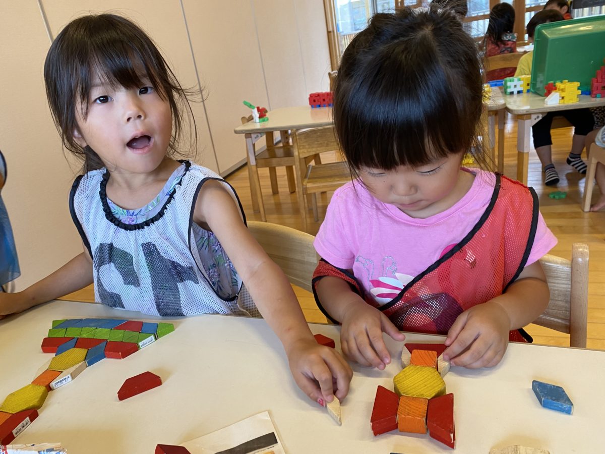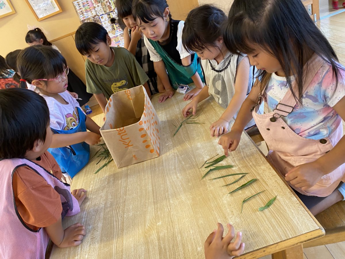 笹の葉の数を数えることが出来るかな!?と一枚一枚並べながら挑戦していました。「おしえたろか?」とめろん組さんがお手伝いする姿も見られました。