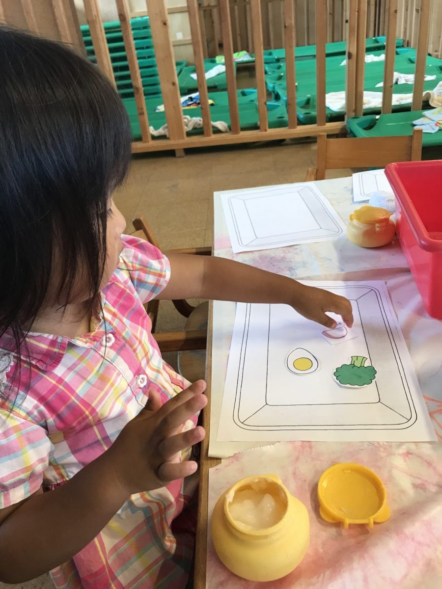 「ブロッコリーも入れよ」とお友だちとお話しながら楽しんでいました。