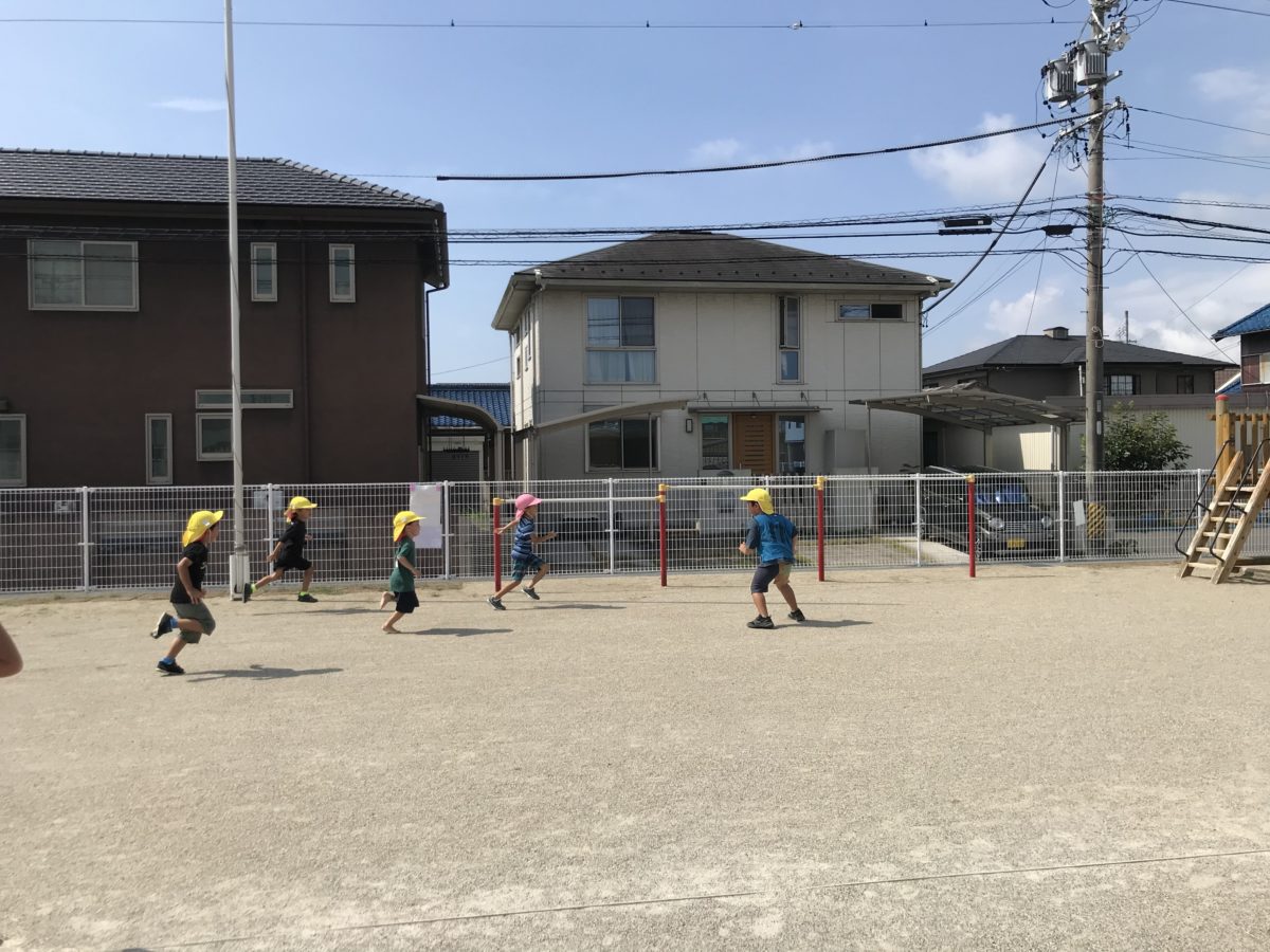 以前ゴーヤの種の観察に注目していた子どもたち。「これゴーヤのたねや!」「たねどうする?」とお友だちと相談する姿がありました。資料を一緒に置いておくとそれを参考にしながら「みずいれるってかいてあるで~」「みずにいれてみよ~」「ひとばんつけておくってかいてある!」「ひ・と・ば・ん?ってなーに?」「あしたまでおいとくんちゃう?」と自分たちで考えながら種を大切にしている様子がありました。「あしたになったらどうなっとるかな~」「たねおっきくなるんちゃう?」と楽しみに待っている声が聞こえてきました。園庭では「おにごっこしよーよ!」「ふえおに しやん?」という声があり『ふえおに』がはじまりました。「おにのひとぼうしきいろにしよ~」「タッチされたらおにになるんやで~」とルールが分からない子に教えてあげる姿がありました。「まて~!」「タッチ!!ぼうしきいろにしてーおにやで!!」とタッチされた子からどんどん鬼になっていき最後は1人になりました。「あとひとりやー!」「あっちからいって~」「そっちいくで~」と鬼さんが協力しながら最後の一人を捕まえていました。「あーつかまった・・・」と最後まで逃げ切っていた子はとても悔しそうな表情をしていましたが「もっかいやろ!!」と切り替えてもう一度挑戦する姿がありました。