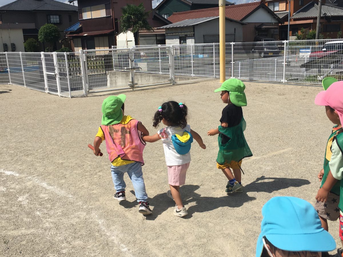 久しぶりにリレー決勝戦!! 「ひさしぶりにけっしょうせんやん!」と子どもたちもやる気十分!どっちが勝つかな?