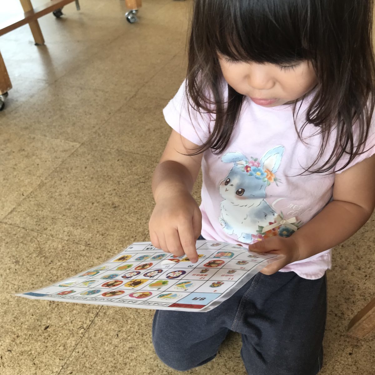 シール貼りをおたより帳の枠を用意してみるときれいに枠の中に貼る姿がありました。ここが一つ足りないの。と足りなかったことを教えてくれて全部きれいに貼り終えると満足そうな表情でしたよ。