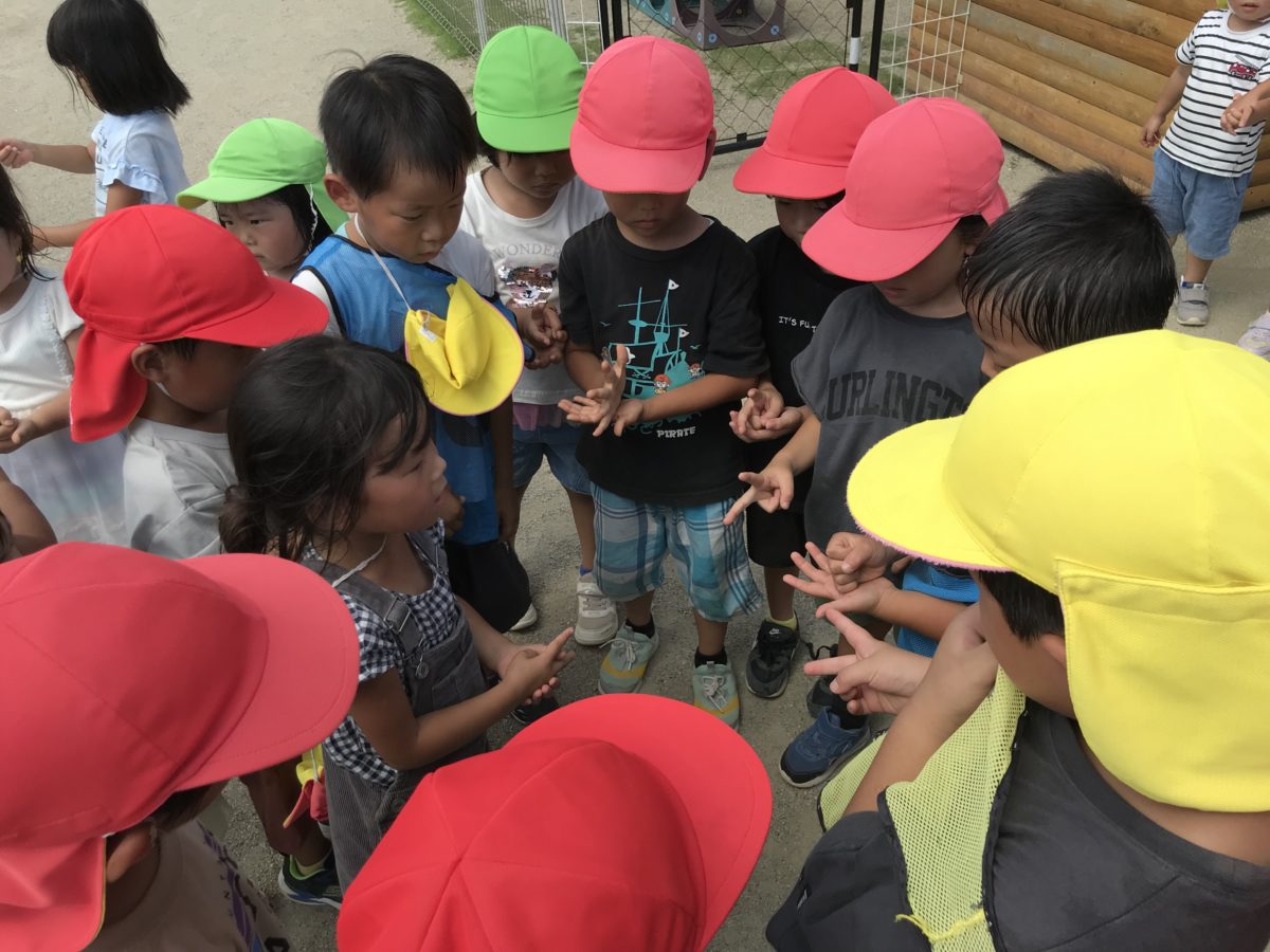 「おにごっこしよー!」「じゃあ、おにきめやな!」と鬼決めじゃんけんが始まりました。