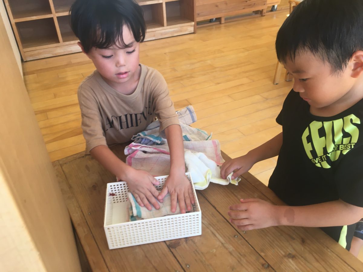 「これたたむの?やるよ~。」と自らお手伝いをしています。