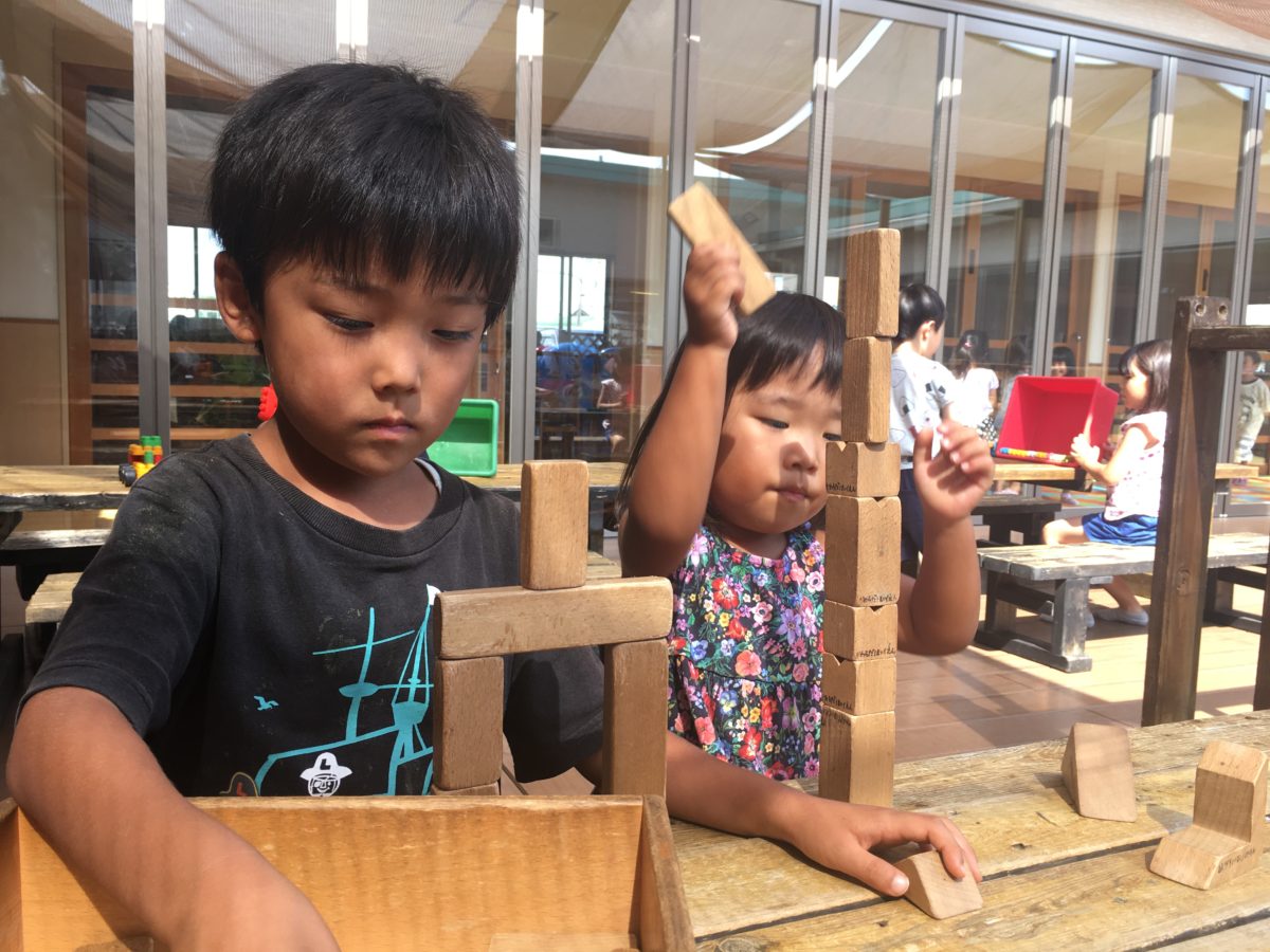 どっちがたかくつめるかな~?どんどんたかくなってきたー!!