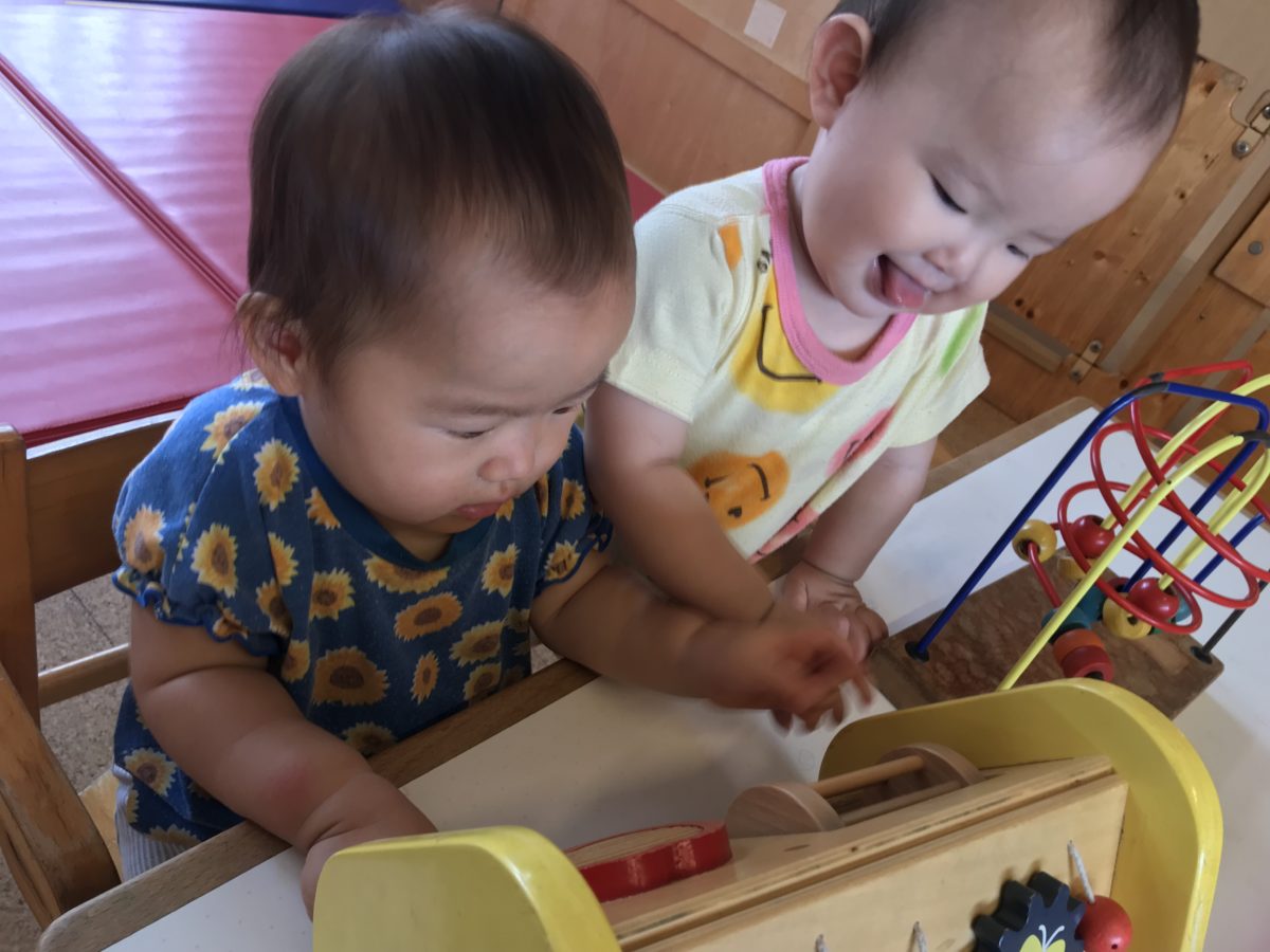 玩具に夢中ですね、仲良く遊べたかな?
