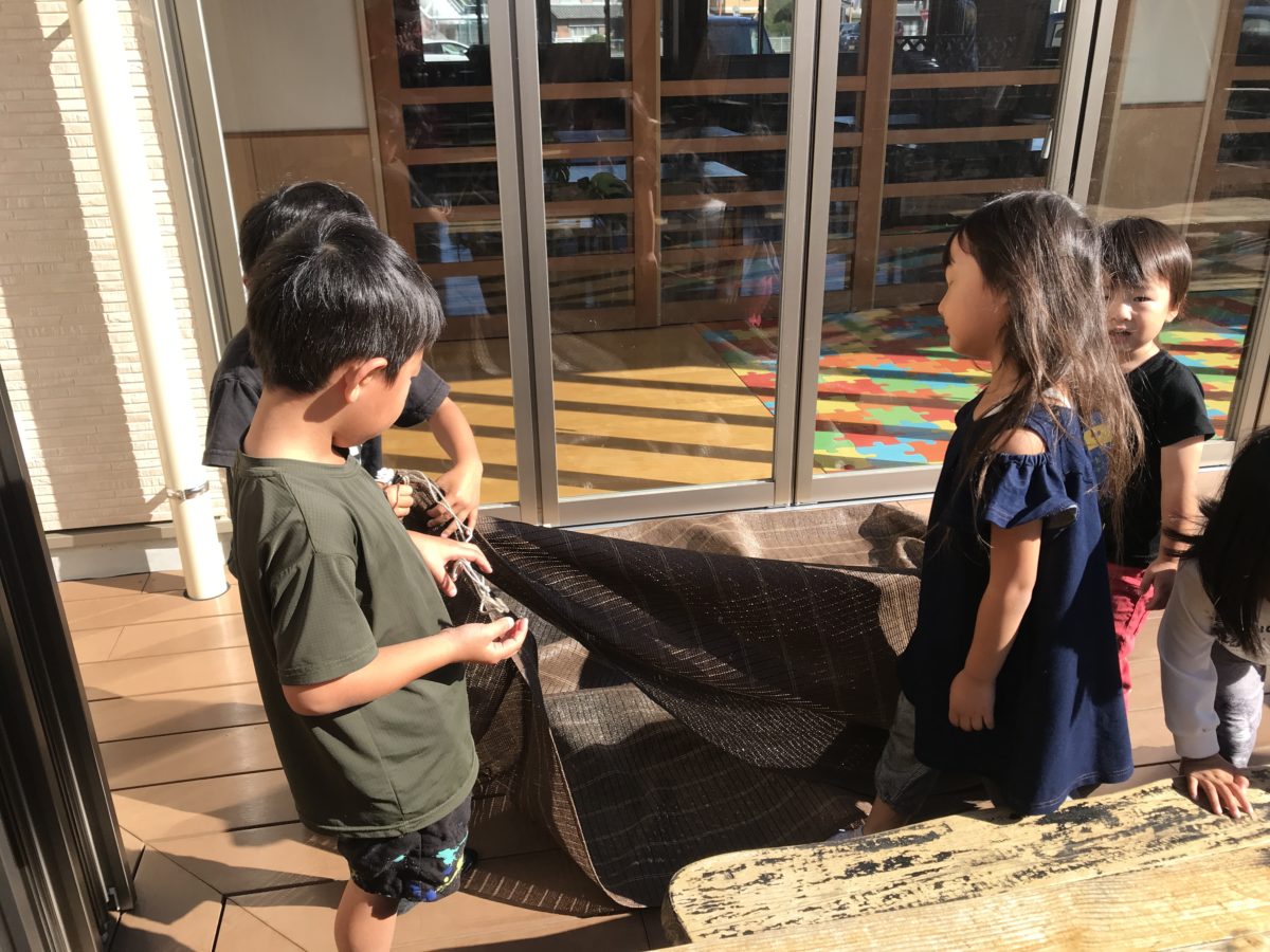 みんなでお手伝いをしてくれました。「家で布団を自分で畳んでるから畳める!」と張り切っていました。