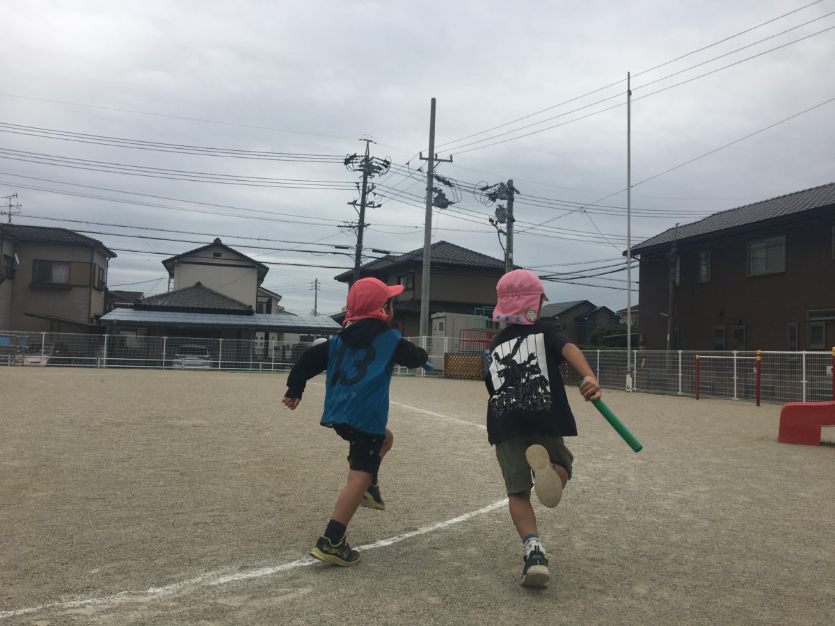 今日は、いつものバトンから長いハードルのバーを使ってリレーを楽しみました。