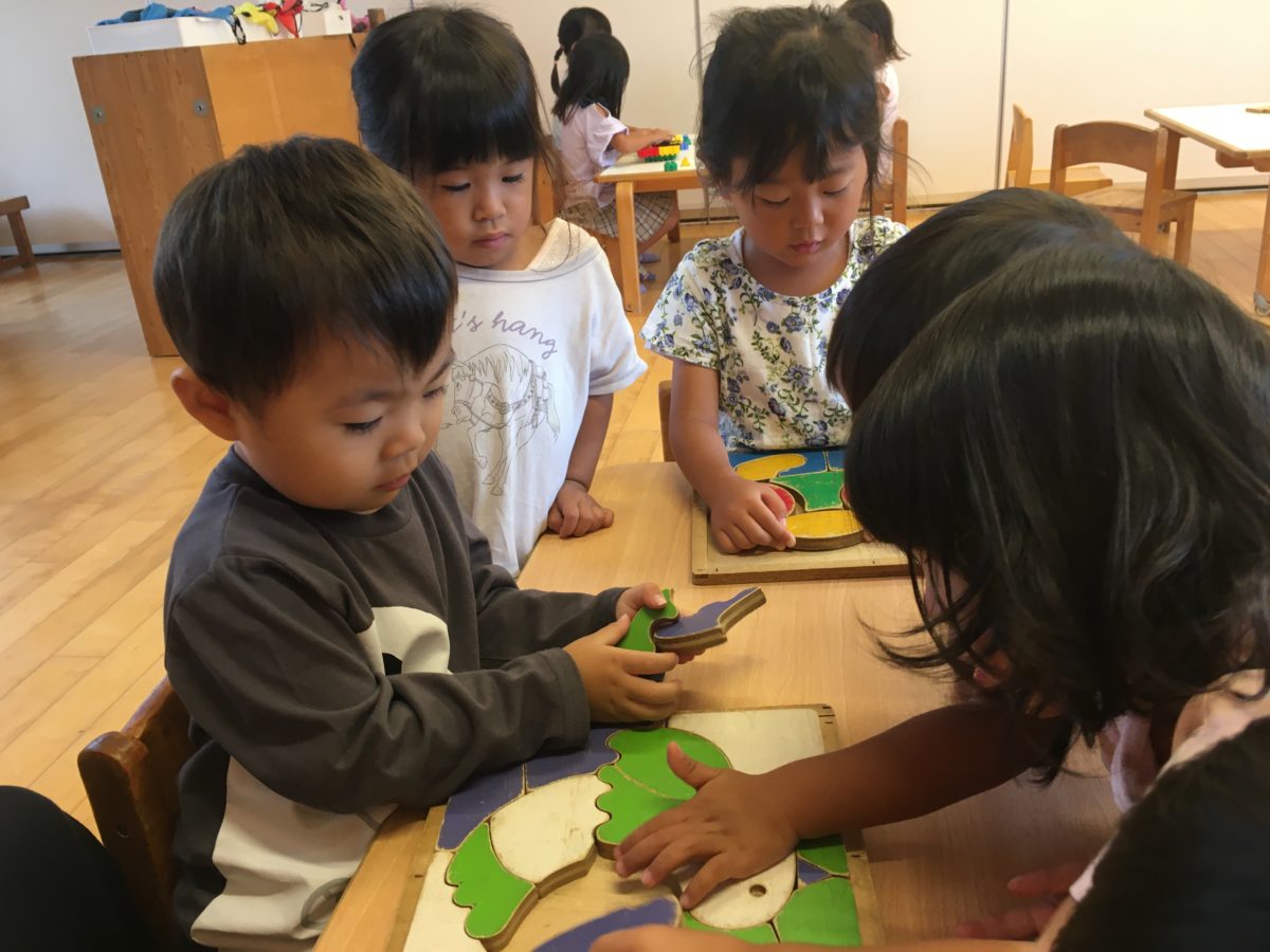 パズルに夢中のりんご組さん。