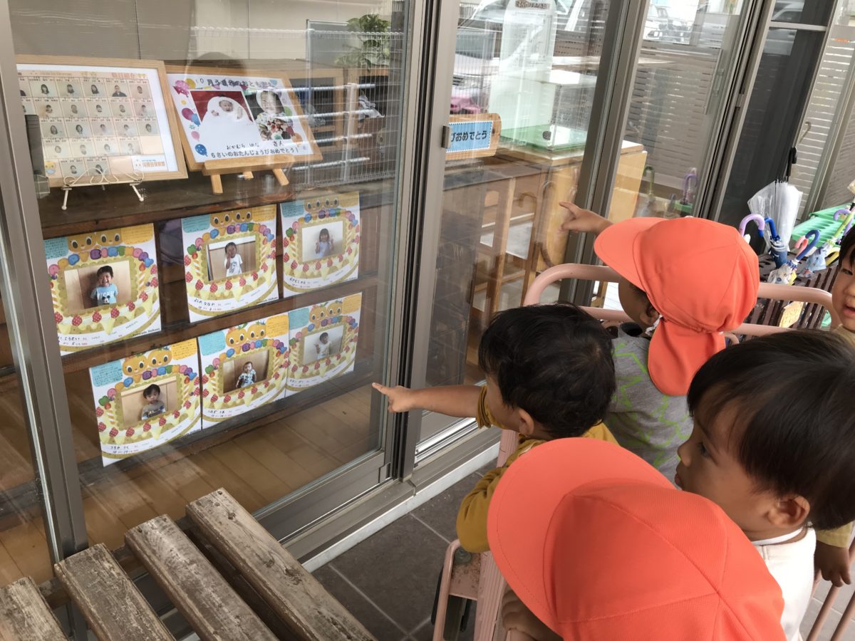 園内を散策し、お誕生色紙を発見!クラスの子を見つけると「〇〇くんおった!」と嬉しそうに教えてくれました。