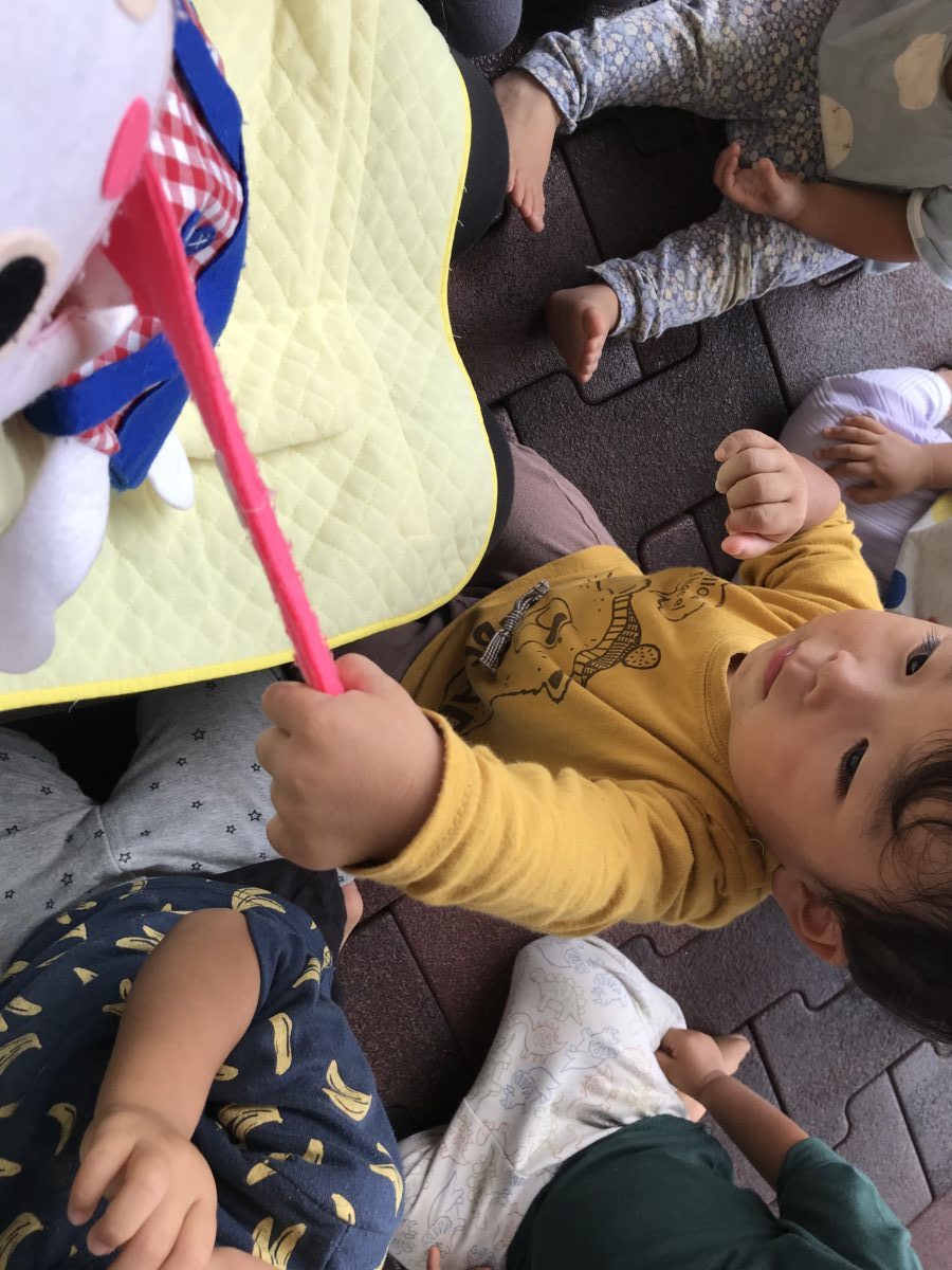 すいか組のお友だちは、いちご組のお友だちが全力でいないいないばあをしてくれたのがとても面白かったようでみんな大笑いでした。