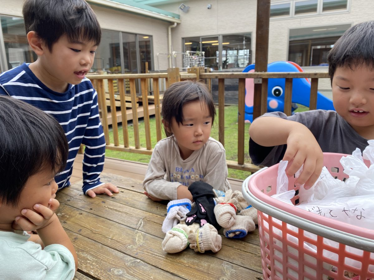 「あしたは、さつまいもほり!!」「みんなのぐんて、そろっているかな?」27までお友だちと協力して数えて「ぜんぶあった!!」と確認していました。