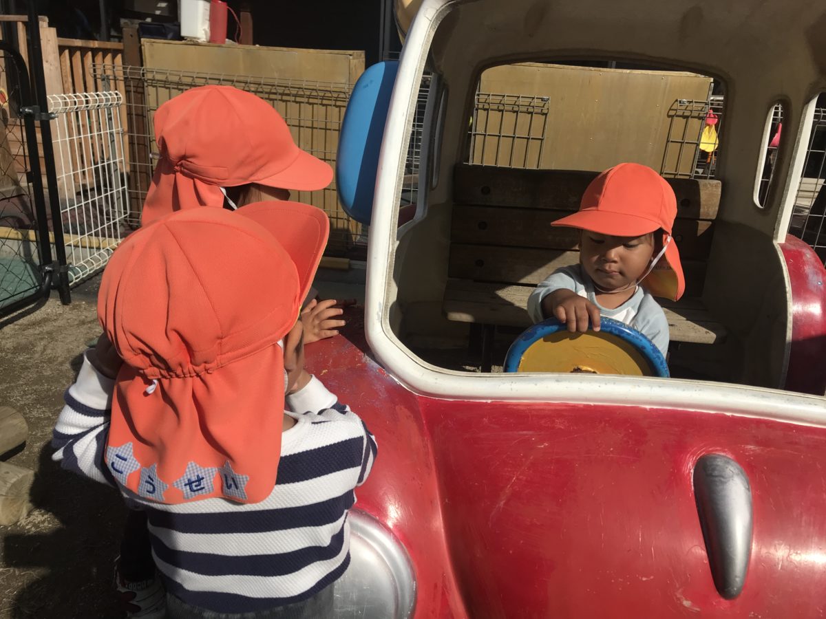 ハンドルをグルグルといっぱい回していたので、周りのお友だちも「どこいくのー?」と話しかける姿がありました。