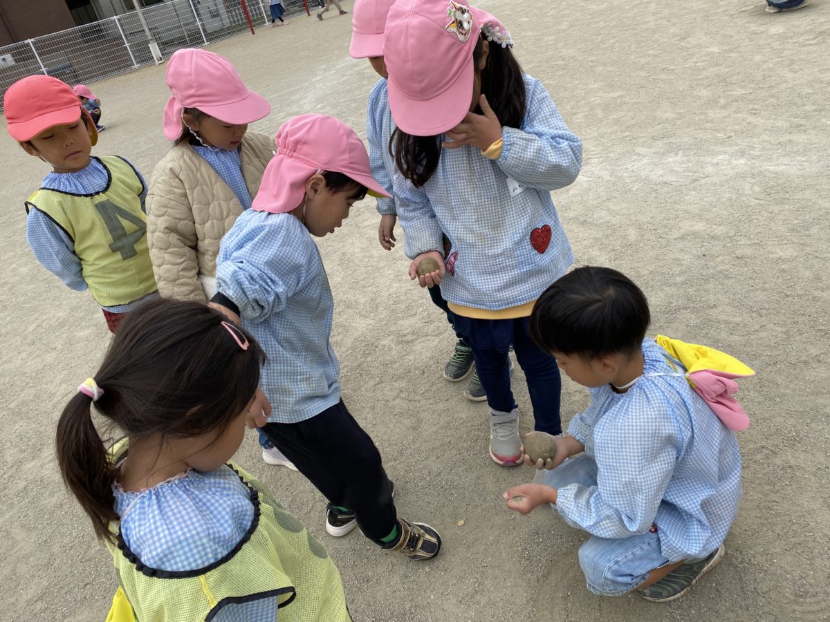 「今日はどうやってなかみ、みる?」「いしは?」「あしでも、できそう!」みんなでアイデアを出して、試していました。