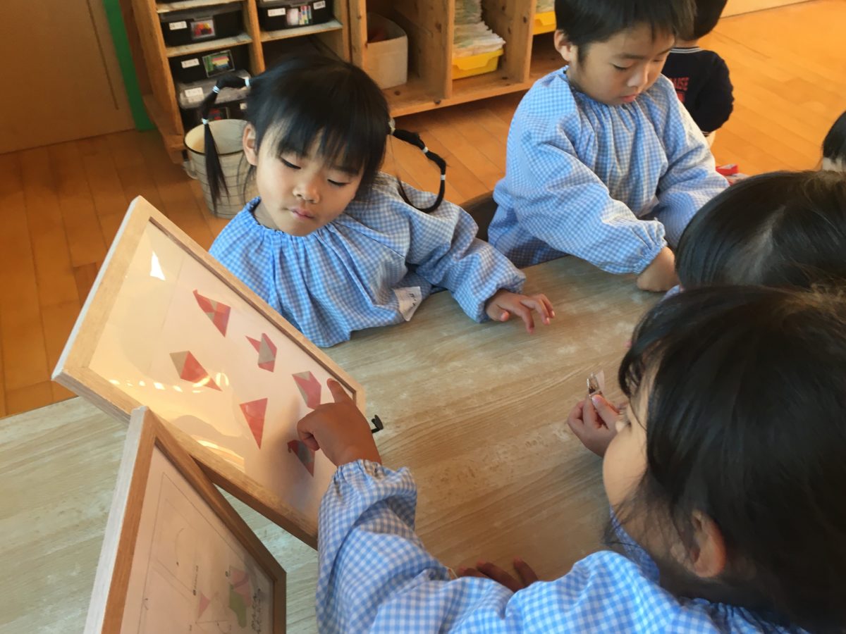 リースやクリスマスツリーを折り紙で作って楽しんでいた子どもたち。今日はサンタクロースの折り方の写真を準備しました。写真は折り方の順番通りではなく、ランダムに並んでいましたが写真を見ながら「まずはやっぱりさんかくにおるんじゃない?」と写真を見ながら折る順番を考えていました。折り方を考えながら「あれ?このかたちにはならないな・・・こうじゃなかったのかな?」と試行錯誤しながら作ろうとしていました。すると「わーいできた。」と自分で折り方を考えながら無事に完成したサンタクロース。「つぎはいろぬりたいな。そしたらもっとさんたくろーすみたいになるかも。」とアイデアを出し合う姿なども見られました。園庭では、今日もリレー対決!!フラフープや大きいボールをバトン代わりにするとフラフープがバトンのチームは「○○ちゃんここにあたまいれて!そうしたらすぐにわたせるかも。」と勝ちたい一心で、スムーズにバトンを渡す方法を考えるような様子も見られました。またりんご組さんはボールをお友だちと一緒に蹴ったり追いかけたりして気分はまるでサッカー選手!!「ぼーるまてー!」と一生懸命追いかけたり「えーい!」と勢いよくボールを蹴って楽しむ姿がありました。