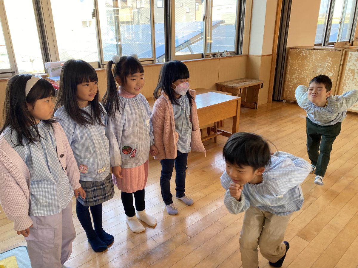 「むかーしむかーし!!」と元気なナレーター役のお友だちの声が聞こえると、役になりきったおじいさんとおばあさんが登場して盛り上がっていました。