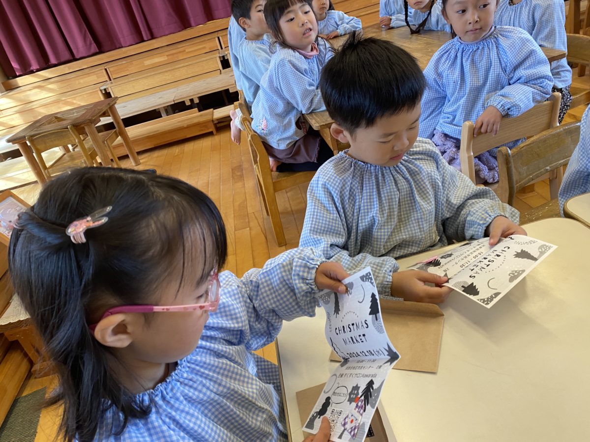 お世話になっている河原田地区のすくすくサロンの方から、めろん組さんにクリスマスマーケットの招待状が届きました。一人ひとりドキドキしながら開封しました。
