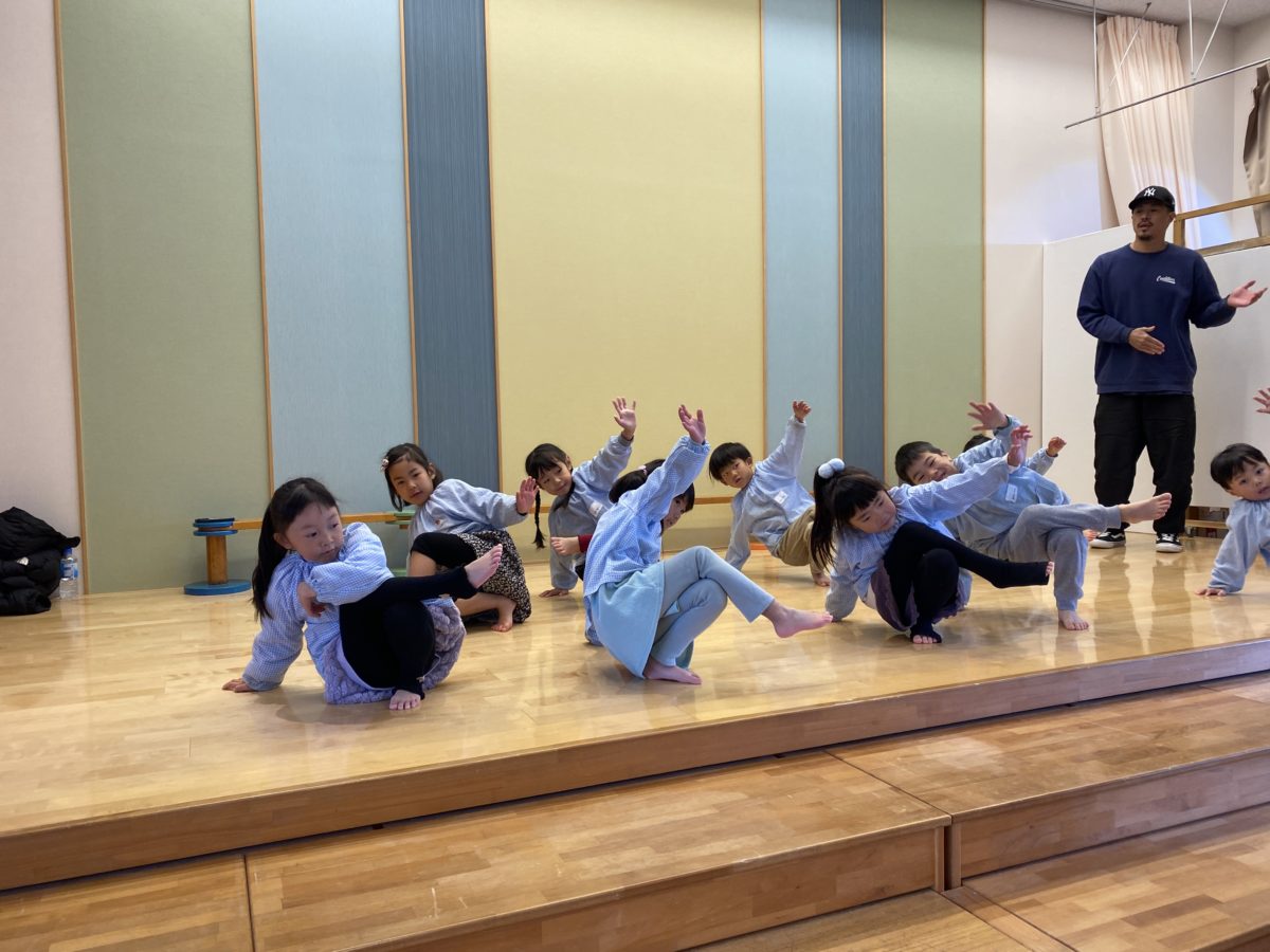 ダンス教室ではバランスをとるのに難しいポーズに挑戦!!音楽に合わせて頑張っていました。