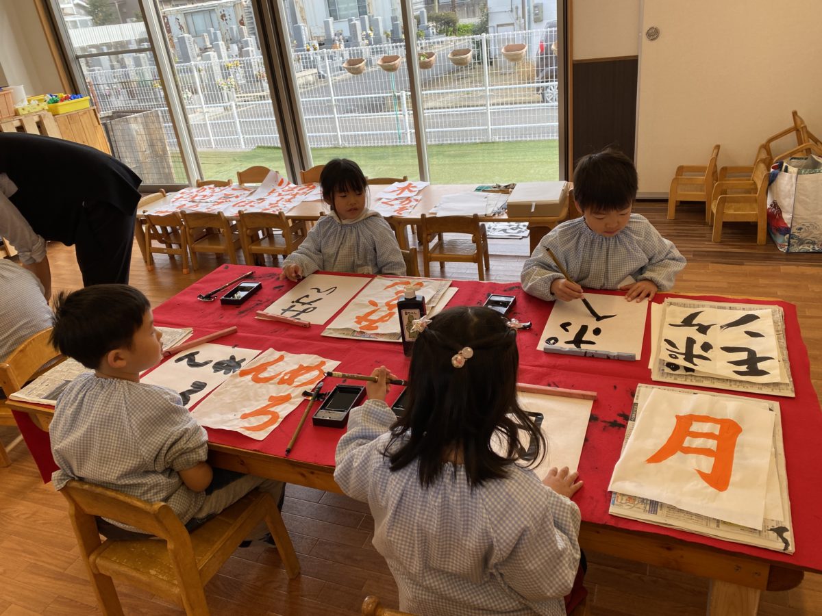 今日は楽しみにしている習字教室では、先週書いた字に思い込めて再び同じ字に挑戦しました。先週よりもこだわって丁寧に筆を動かす姿がありました。