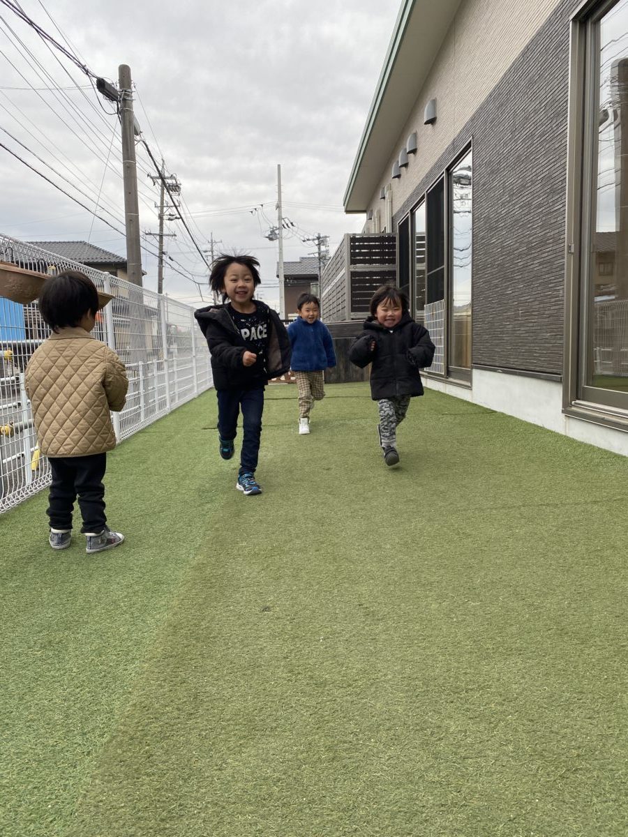 寒いから一緒に走ろう~!走るとあたたかいね~!とっても楽しそうでしたよ。