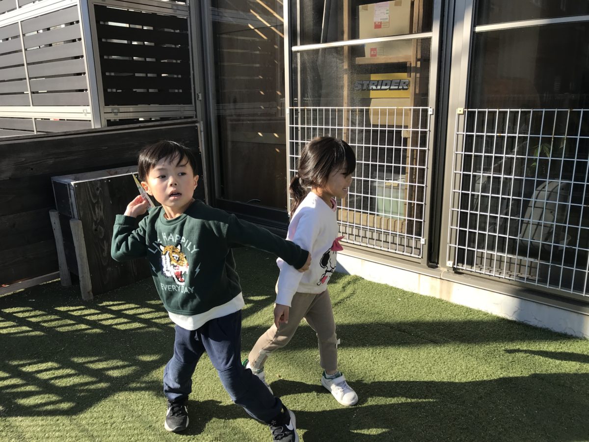 「みんなでかけっこしよう!」と声を掛け合い、全員でかけっこをして楽しんでました。