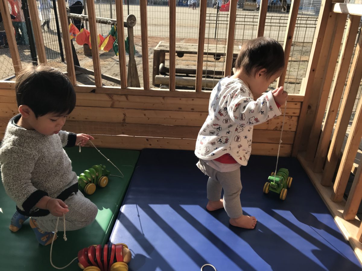 クイクイ!すいか組さんも上手にひもを引っ張ってワニさんが倒れないように動かしています。