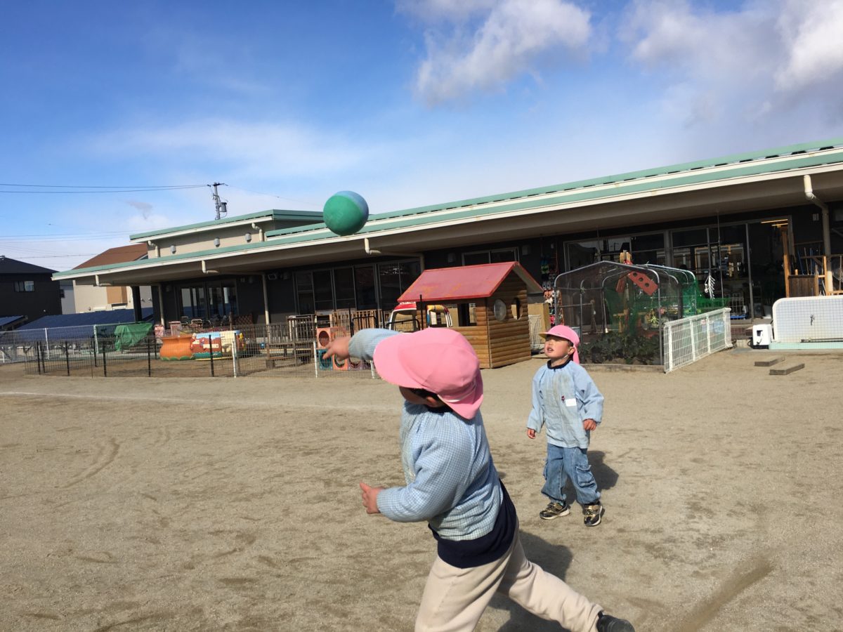 それー!と勢いよくボールを投げてどこまで飛ばせるか勝負だー!!