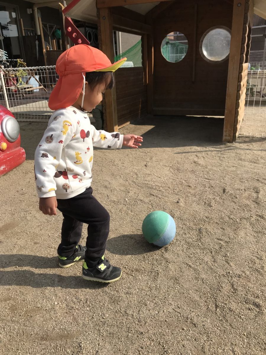 ボールをキックしたり、お友だちと投げ合っててキャッチボールのように楽しみました。