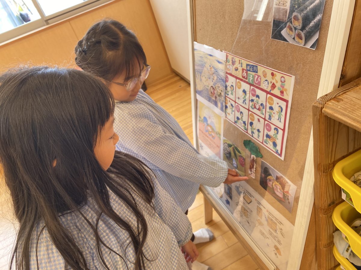 「あっ、これ〇〇ちゃんがつくったやつ!」とお友だちの作品が飾られていることに気付く姿がありました。