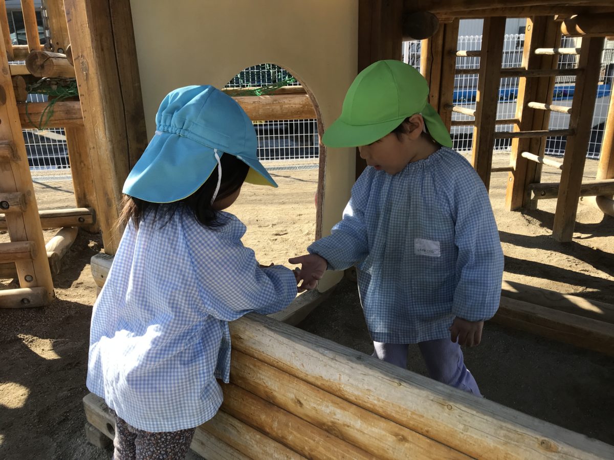 最近数人のお友だちが縄跳びに挑戦していて、日に日に跳べる回数が増えていっています。毎日お友だち同士「どう跳ぶ?そう跳ぶ?」「今跳べばいい?はやい?」とそんな話をしながらコツをそれぞれが掴みながら頑張る姿があり、これからも挑戦を見守っていきたいと思います。