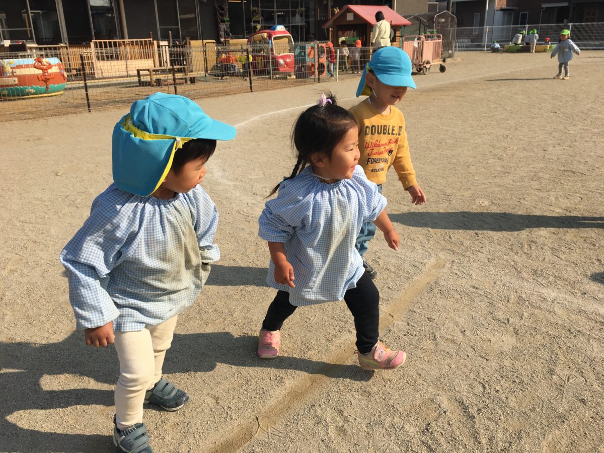 「よーいどんしよ。」とお友だちを誘ってかけっこ。