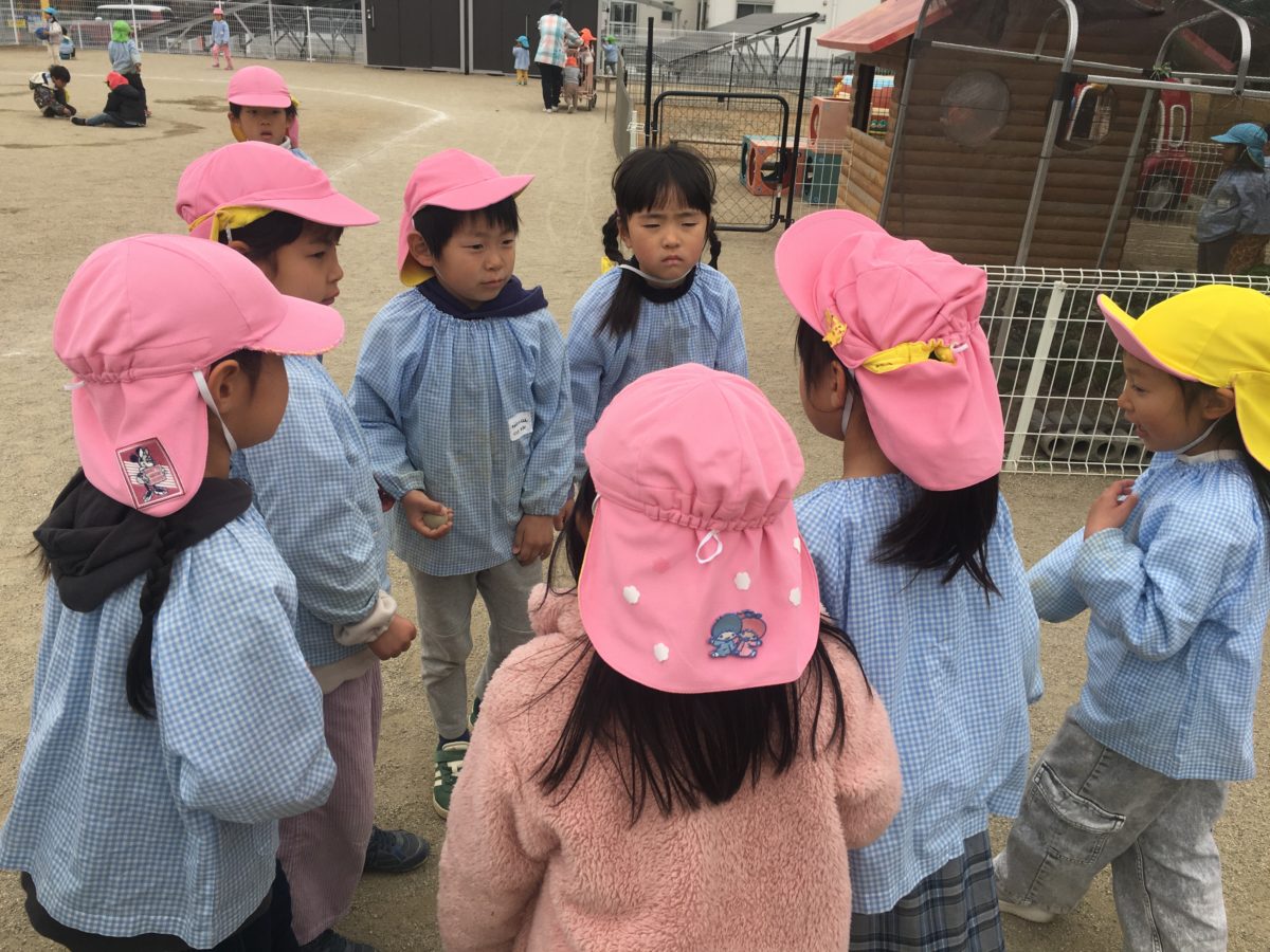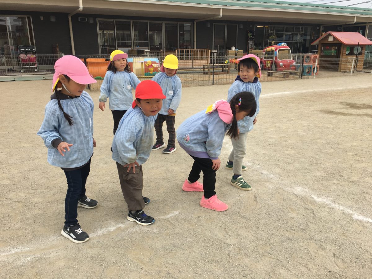 みんなでかけっこしよ!1しゅうはしるのってなんびょうくらいかな…?と自分がどれくらいの速さで走れるのか気になっているようです…。