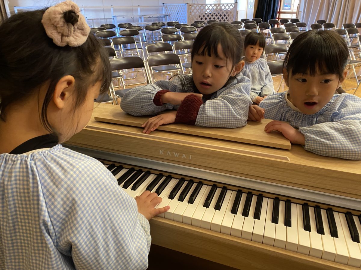 お友だちのピアノの演奏が始まると歌詞を口ずさみながら集まってくるお友だちの素敵な姿が見られました。