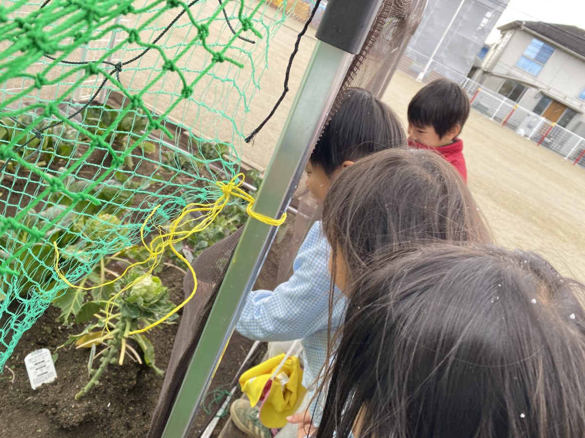 園庭の畑のめキャベツに成長が見られ大きくなりました。しかしうんちがされており、その写真を見るとえ?と衝撃を受けていました。