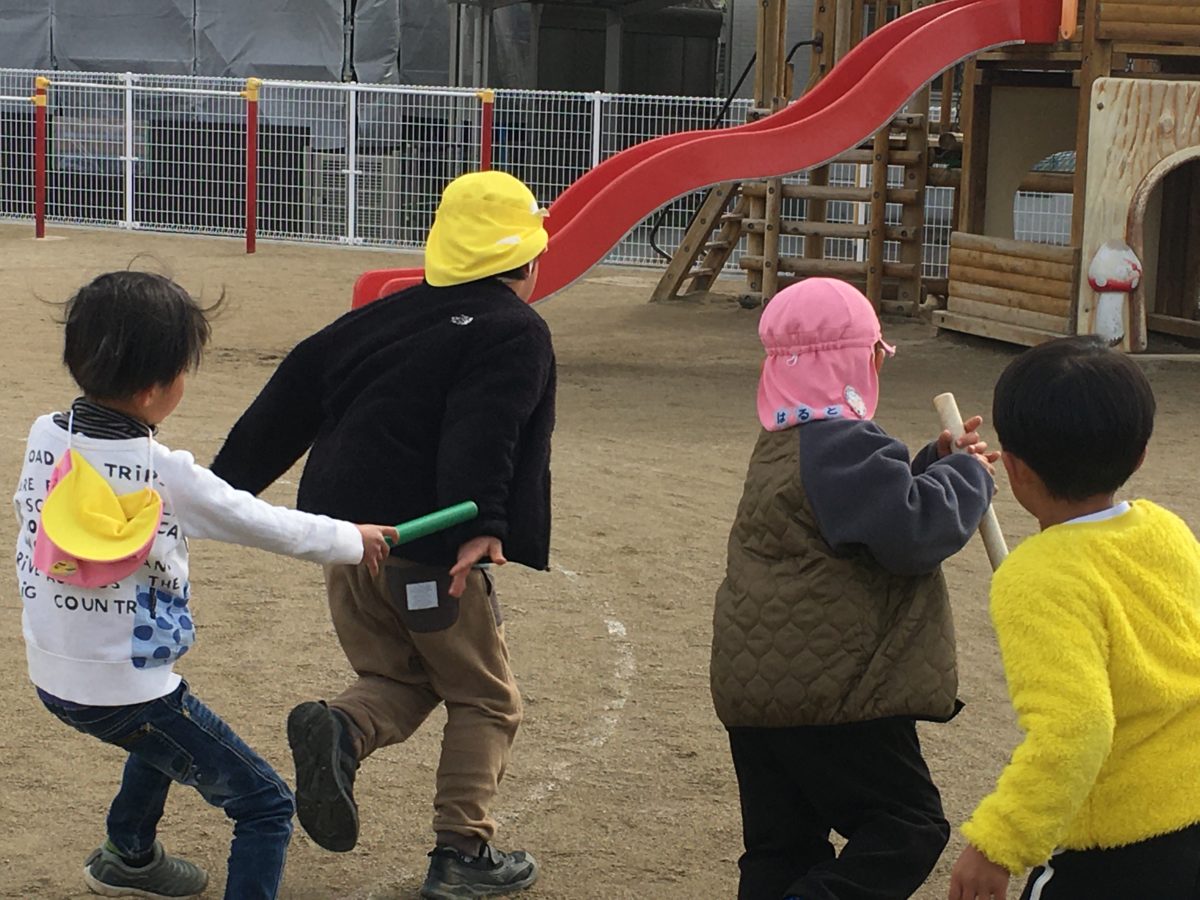 ばなな組さんと一緒にリレー!!「ぜったいにまけないから!!」と宣言するめろんさんでした。