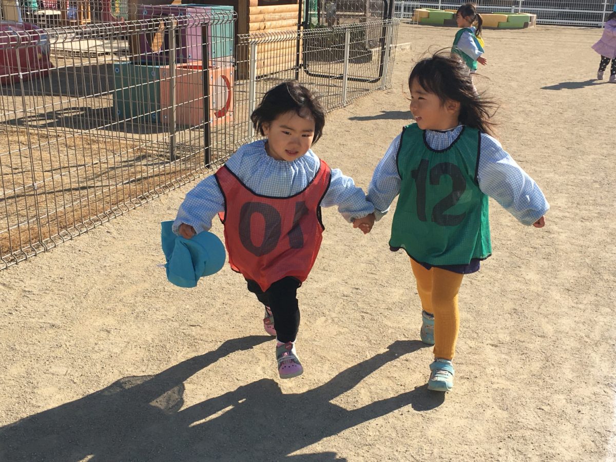 いっしょにはしろ!と手を繋いで走り出し、ゴールも手をつないでゴール。