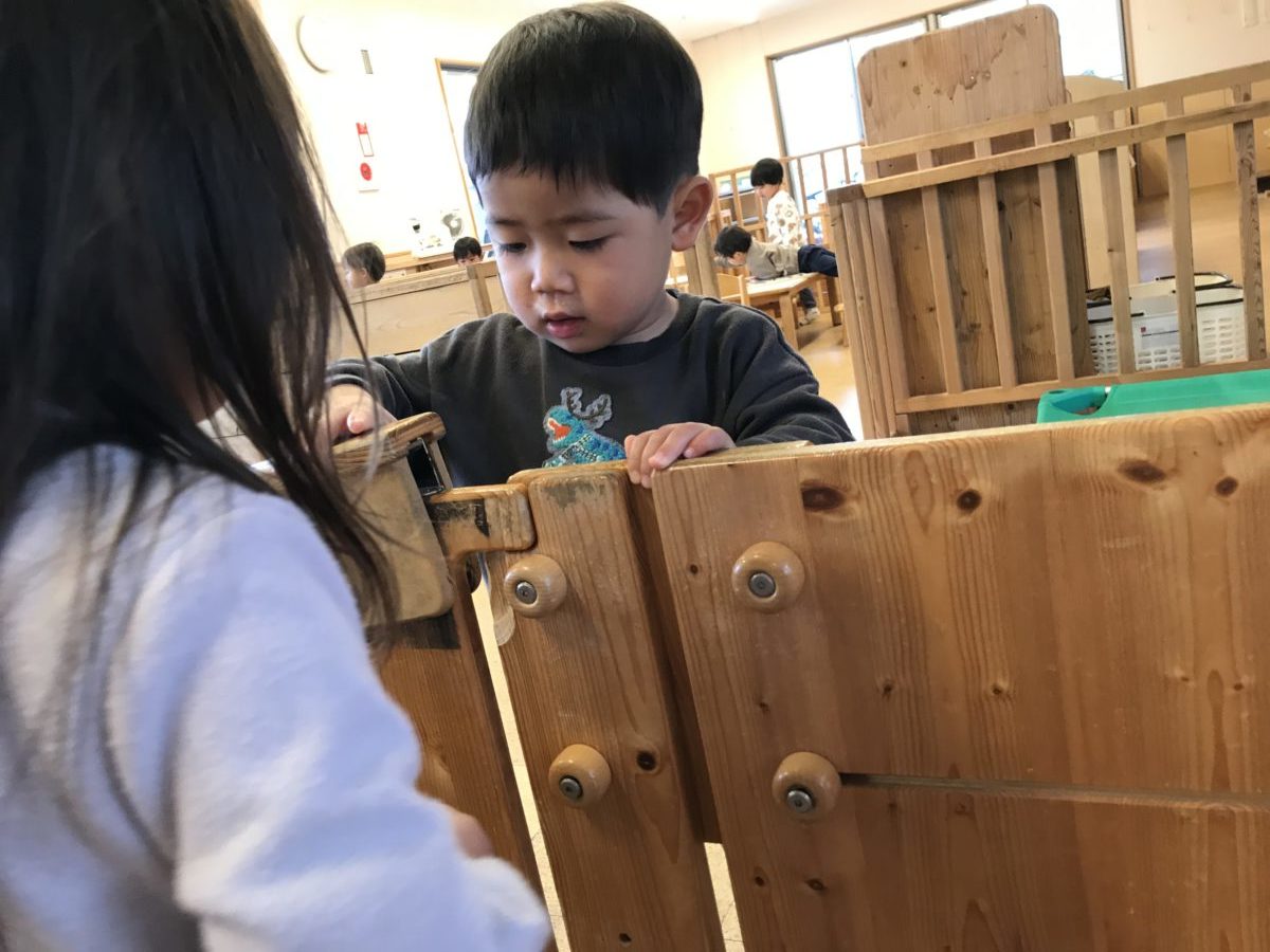「こうだよ」、先にしていたお友達がやり方を教えてくれました。