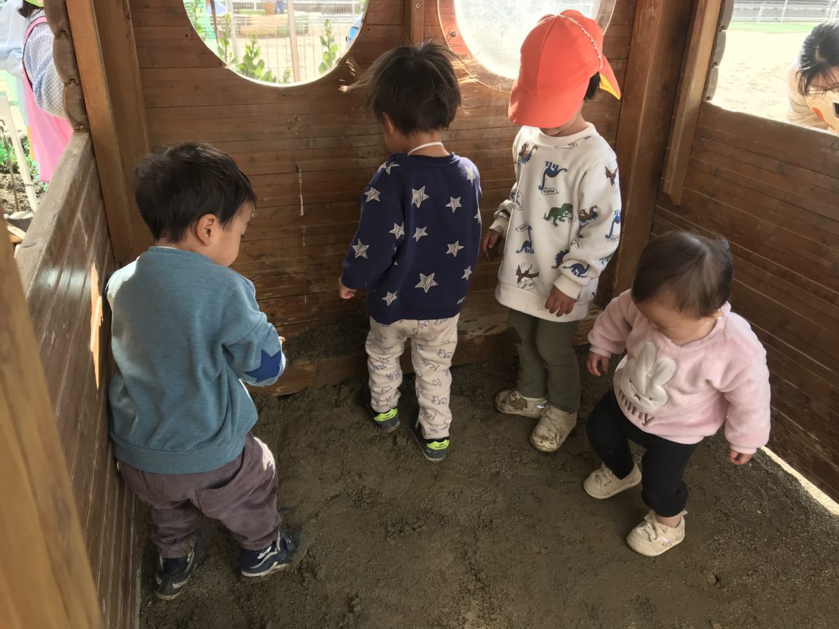 ギュギュッと力強く踏んで湿った土の感触をみんなで楽しんでいました。