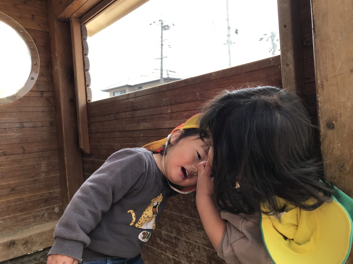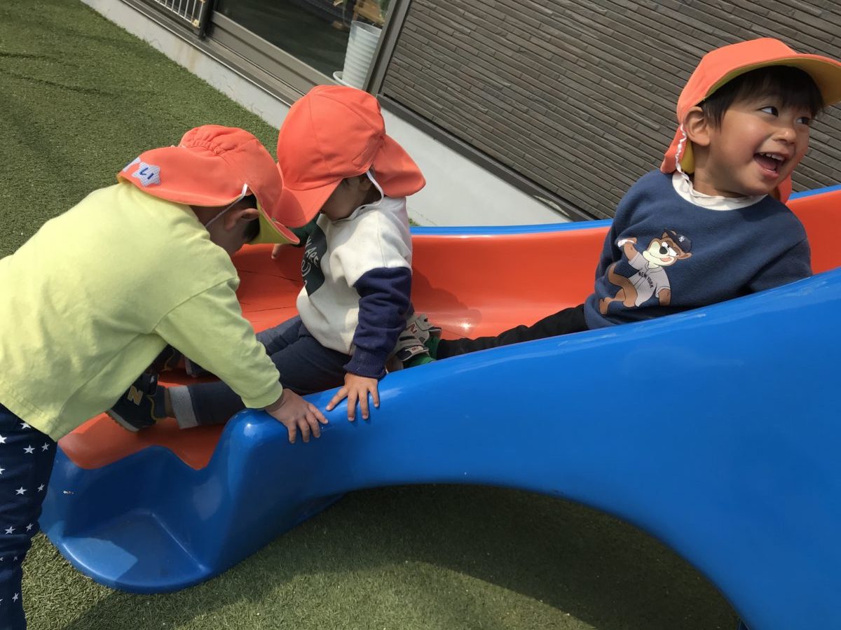 すべり台を楽しみました。順番!と友だちと言い合いながら繰り返し楽しんでいましたよ。下ではトンネルのようにして滑ってくるお友だちを待っていましたよ。