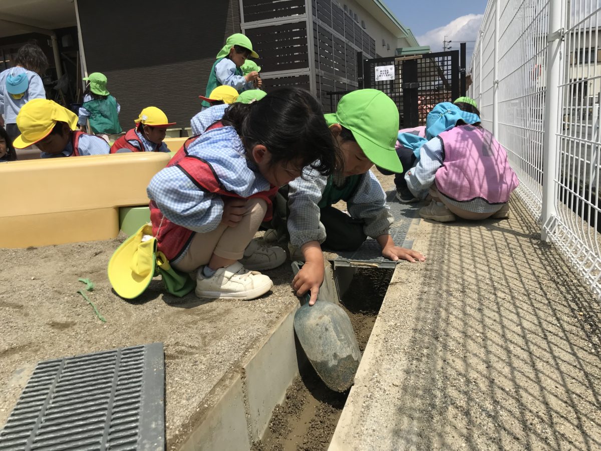 今日は、今年度初めての避難訓練をしました。地震が起きた後の写真や川が氾濫している写真を飾っておくと「なーにこれ?」「くるまがころがってる・・」「どうろもこわれとるなー」と興味津々。また、大きい子は津波の写真をみると「これつなみや!」「しっとる!」「じしんのときにくるんやで」とお友だち同士で会話を弾ませる姿がありました。『地震がきたらどうする?』『津波がきたらどうする?』『火事がおこったら?』と色々な質問を投げかけてみると「じしんがきたらつくえのしたにかくれるー!あたまをまもるんやでー」「つなみはたかいとこにげる!」「おぼれちゃう」「あと、サメにたべられるー!」と豊かな発想の声で答えていました。非常ベルや緊急地震速報の音を流してみると「なんかこわい・・」「このおとはかじのおと!」と真剣な表情で音を聞く様子がありました。