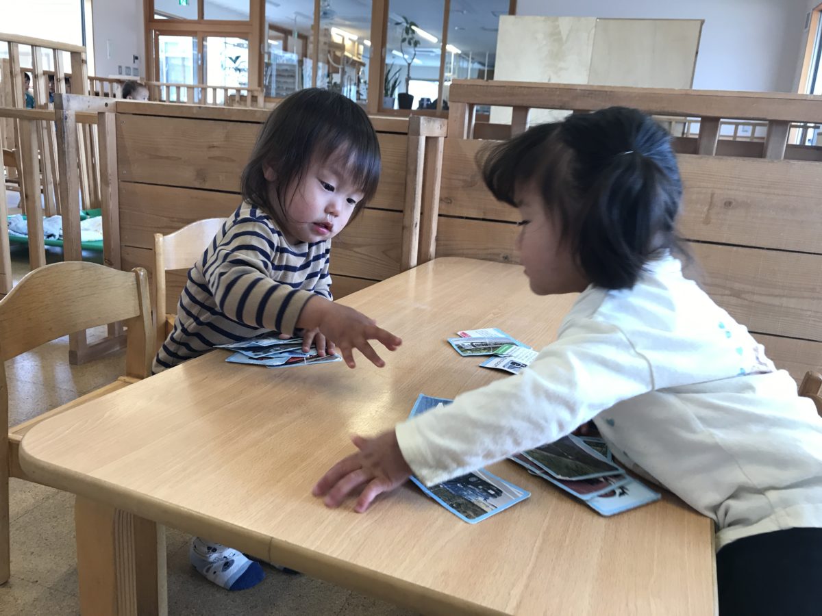 これはぼくの!これあげる!カードを分け合っていました。