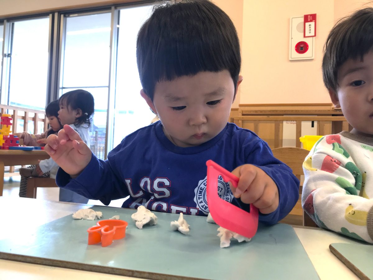 粘土遊びに夢中なお友だち。