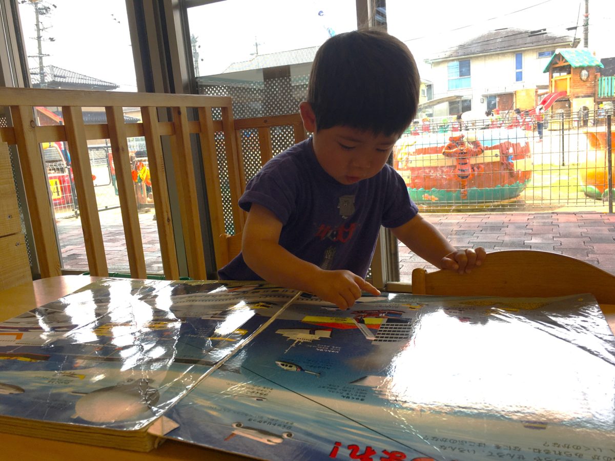 「これ!」と知っている乗り物を教え合っているようです。